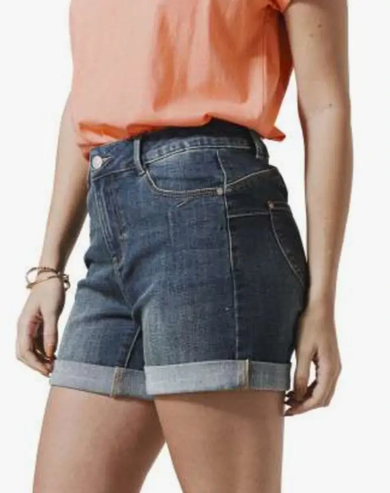Les revers cousus au bas des jambes apportent une touche décontractée et moderne, tandis que les coutures contrastées et les rivets métalliques soulignent son authenticité. Ce short s’associe facilement à tous les styles : un t-shirt rentré pour un look casual, une chemise fluide pour une allure chic, ou encore un crop top pour un esprit plus estival.